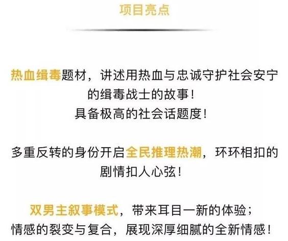 值得关注的是,项目信息两处都写明“双男主”,不但在演员后面标注,项目亮点中也特别提及,可演员排序总有先后,王一博的名字排在了陈晓前面。