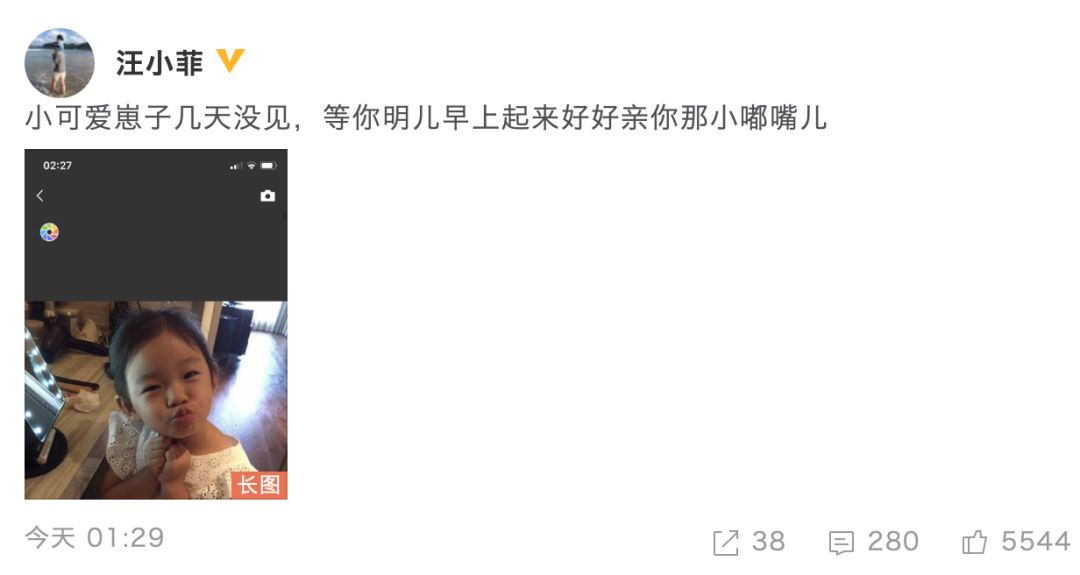 10月12日凌晨,汪小菲发博称:“小可爱崽子几天没见,等你明儿早上起来好好亲你那小嘟嘴儿。”并配上了一张自己朋友圈的截图,不管是北京还是头像,全都是女儿小玥儿。