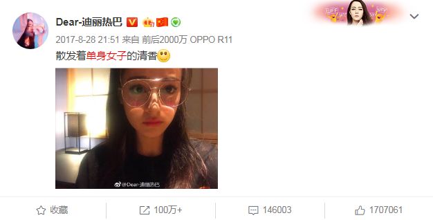不仅如此,迪丽热巴还是有名的“单身狗”体质,每次发微博自拍,或者参加活动,身边总能遇到情侣撒狗粮,让人觉得又好笑又心疼,她自己也调侃自己散发着单身狗的清香。