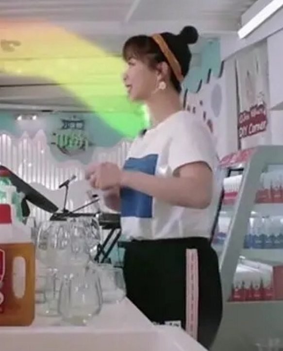 在工作的时候,林大厨经常找她试菜,她也没经得起诱惑,吃个不停,在整季节目下来,杨紫胖了不少,肚子上的赘肉很是显眼。