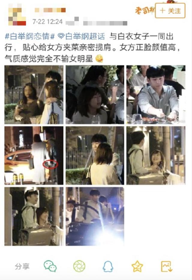 其实白举纲与这位女孩的恋情在今年七月份已经被曝光。