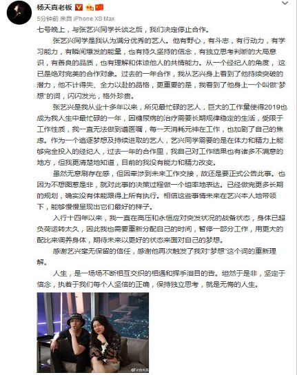 所以张艺兴跟杨天真会突然宣布解约,那肯定是别有缘由的。