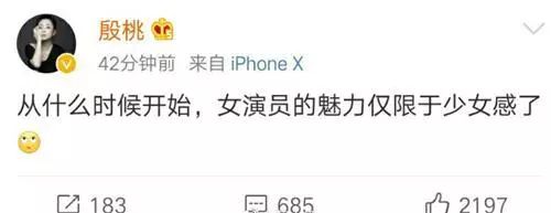 在“唐嫣 少女感”登上微博热搜不久,殷桃发文称:“从什么时候开始,女演员的魅力仅限于少女感了。”在《鸡毛飞上天》里从少年演到老年,把每个年龄段都演活了的殷桃,自然有底气说出这句话。