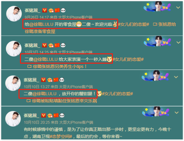 但先不谈张铭恩要如何证明很爱徐璐,就冲张铭恩节目中说过不喜欢把私生活隐藏,在社交媒体上更是大胆宣爱,而且每一条留言都是糖一般的甜蜜,就此表现来看,张铭恩还是很值得托付的。