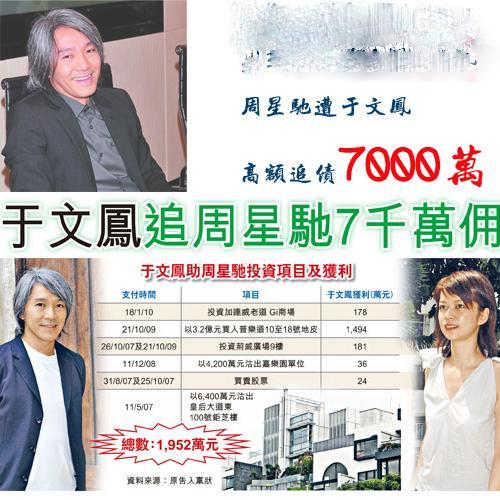 于文凤声称曾经和周星驰订下八千万港币的口头合同,而周星驰只付了一千万,到现在尾款还没有付清,这场佣金官司历经7年都没有结束。