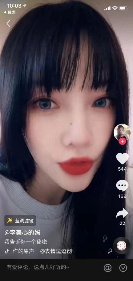 一动起来脸显得更小了,但是眼睛和鼻子却显得很大,感觉这张脸显得很局促,根本装不下她的五官,加上戴着夸张的浅蓝色美瞳,比二次元美少女的脸还要夸张。