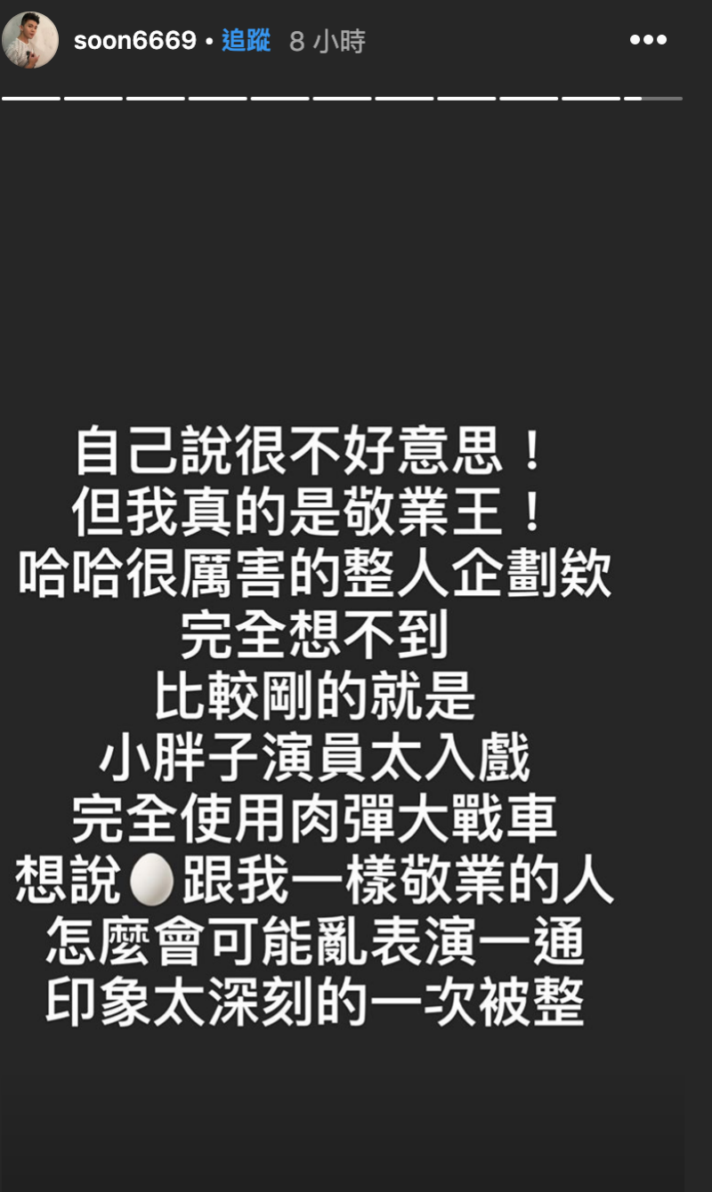 看了孙生的回应之后,也是不得不说这操作真是有点厉害了,整人都给整受伤了,完全让人看不出是一场策划,是在演戏呀。不过虽说孙生被整受伤了,但看他的回应,他面对这次被整,也是很乐此不疲呀。