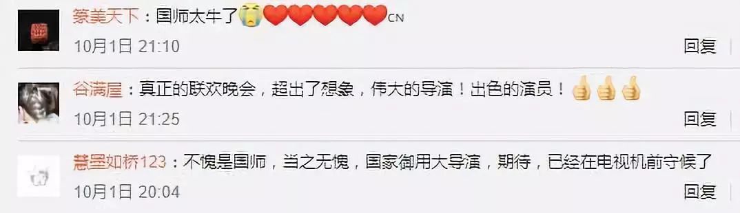 继2008年执导的北京奥运会的开闭幕式震惊海内外后,导演张艺谋在2019年七十周年国庆联欢晚会上又一次惊艳全场。