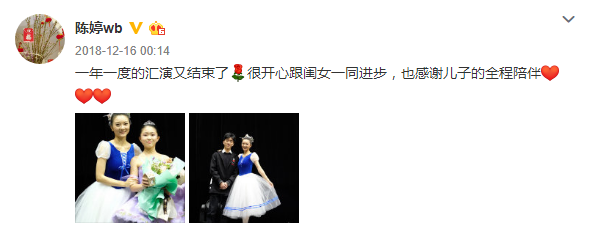 2016年开始,陈婷又开始做回了自己的老本行——舞蹈,无论多忙都会坚持每周两三次的芭蕾课。