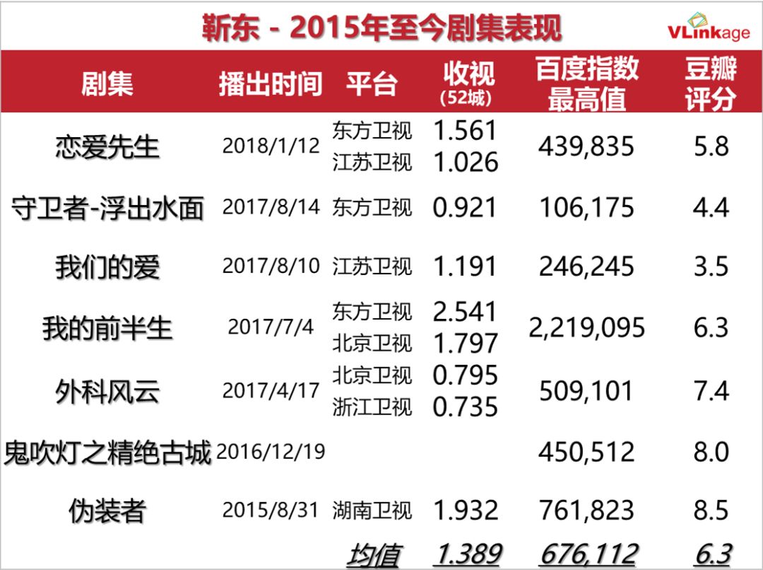 2015年的《大秧歌》,是当时最受卫视喜爱的导演郭靖宇的年代传奇大剧,国民度较高。2016年的两部作品《欢乐颂》和《青云志》也成绩斐然,前者是当年最火热的都市剧,有着超高国民度,后者是具有超强人气的玄幻IP,在年轻受众里有着较高影响力。