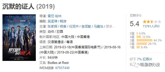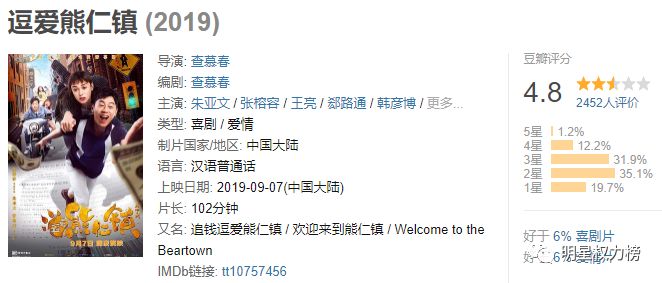 他呢,分是比黄磊高,但在总评上只好于2%的剧情片。