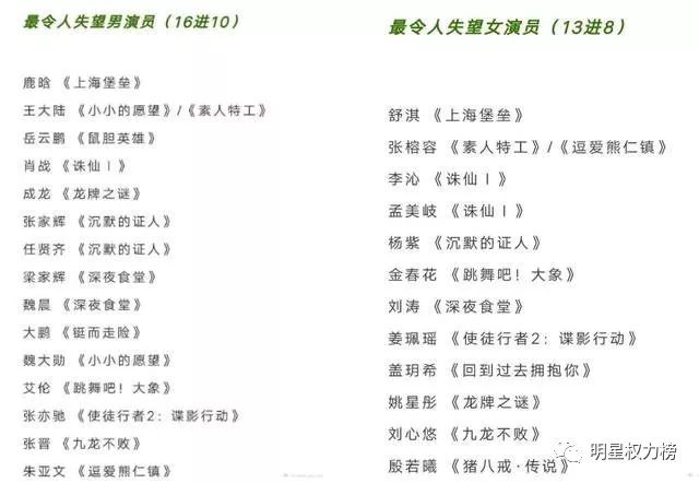 今年这奖经过筛选之后,入围“最失望男女演员”的名单又双叒叕出现在大家伙儿面前供观众们投票了。