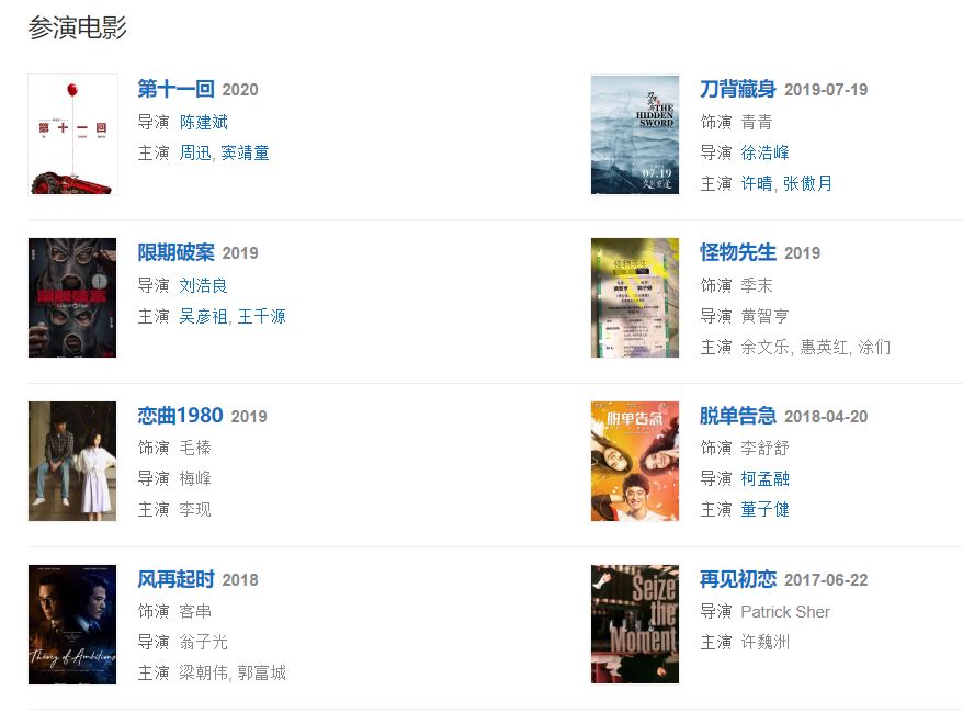 但是春夏的接下里的存货还是很多的,主攻大荧幕,比如:徐浩峰执导的《刀背藏身》、陈建斌执导的《第十一回》、翁子光执导的《风再起时》和梅峰执导的《恋曲1980》。
