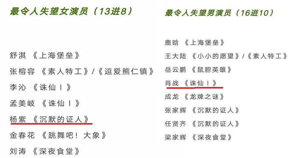 但对于《余生》是否能够在明年大火,仍有三点让小编心存疑虑不吐不快。首先是主创杨紫肖战作为当红流量,自然也会让观众自带“演技滤镜”检验。10月8日,金扫帚奖提名名单公布,杨紫肖战均为“最让人失望男、女主”入围人选。