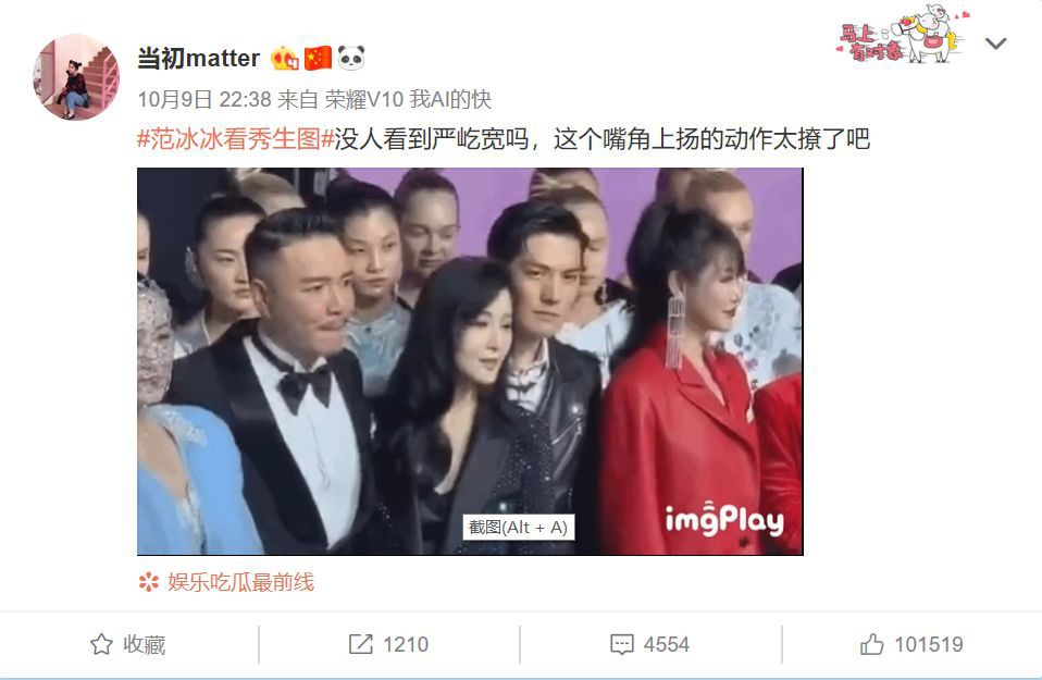 10月9日晚,一位微博博主po出一张时装秀的合照动图,称合照中严屹宽的嘴角上扬实在太撩人,从而引起热议。今早,#严屹宽侧颜#这个话题更是一举冲上热搜第四,引起广泛关注。
