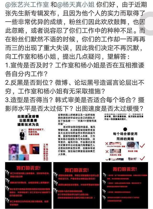 此前就有网友爆料张艺兴方面的工作人员对杨天真的工作不是很满意,甚至张艺兴的粉丝经常上演一些“手撕”杨天真的场面,认为杨天真及团队没有职业素养,不满情绪由来已久。