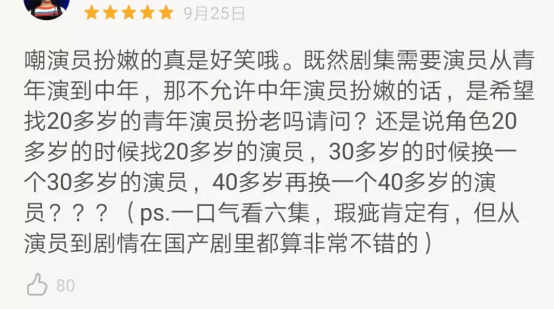 虽然剧集在开播之初因为演员们装嫩的扮相倍受质疑,但次元君觉得这样的设置更利于剧情的深入,毕竟剧情并没有年份的跨越,而发型服装等也只是为了符合当时的年代背景,单因此而给这部剧打低分或是弃剧没有必要。