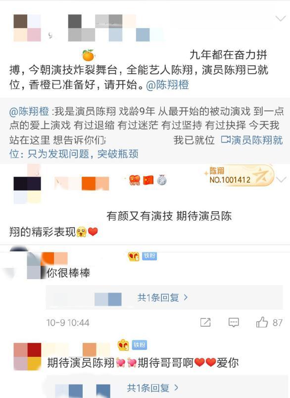 在10月9日陈翔发在社交平台上的最新动态下,粉丝们的态度都是这样的。