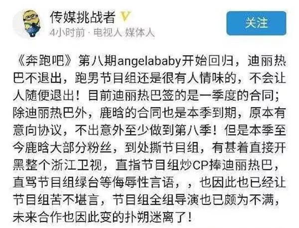 特别是后来,当时作为鹿晗经纪人的杨天真又发话了。“我们从来不配合任何cp的炒作”,这话一出不就是在暗示热巴团队强行拉郎吗?