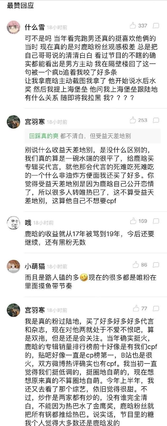 原因是今天姑婆在看论坛的时候,有帖子提了陆地cp现在都还是依然高楼热议,由此,在这个帖子里发生了鹿晗家和热巴家的粉丝大战。