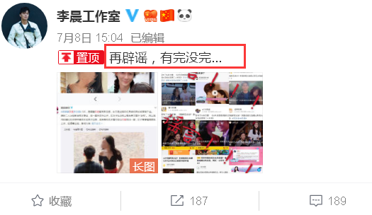 而这个老新闻,李晨工作室也辟谣了不止一次,目前李晨工作室将这个辟谣已经置顶,写着:“再辟谣,有完没完”,显然对于这类新闻已经免疫了。