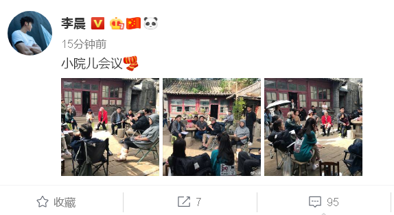 而李晨这边则是很淡定。10月9日,他晒出了剧组日常,表示是:“小院儿会议”,照片中演员们都围坐在一起,应该是在进行剧组围读或者探讨演戏之类的会议,从这个很轻快的语气中可以看出,李晨的心情并没有受到这些绯闻的影响。