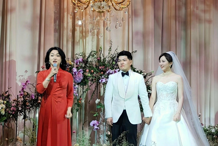 余声结婚,然而大家的关注点却放在了金星的身上,让人意外的是,金星竟然是两位新人的证婚人。两人同为主持人,关系一直都不错,所以余声才能请得动不愿露面的金星了。金星在现场也给出了参加余声婚礼的原因,她称被余声的爱情深深打动,认为这对新人很般配,她只要看到不般配的新人,都没有办法出席别人的婚礼,只因难以欺骗自己,不得不说,金星就是很刚了。