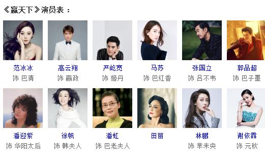 但是没想到《赢天下》这部剧和遭遇事业重创依然努力复出的范冰冰一样是打不死的小强,最近又传出《赢天下》重拍的消息。不过这也可以理解,毕竟前期投入那么大,而且这部剧演员阵容相当豪华,还有严屹宽马苏张国立潘迎紫徐帆潘虹田丽等等明星加盟,也有不少看点。