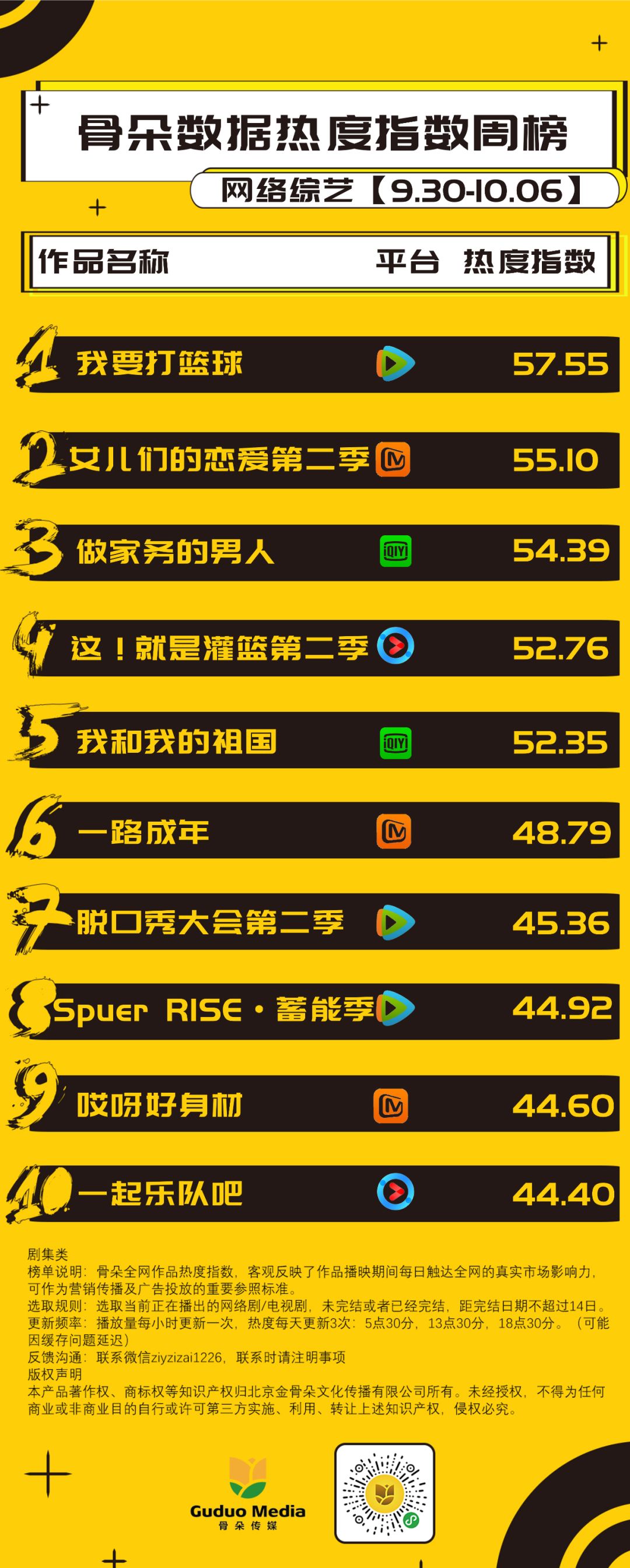 9月30日—10月06日,网综周榜数据解读: