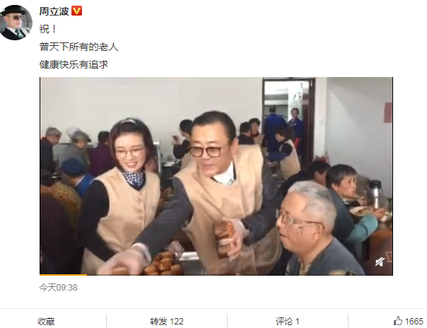 原标题:周立波重阳节和妻子邀请老人聚餐,被网友吐槽这是“改邪归正