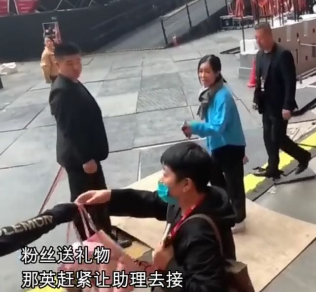 原标题:那英踢人后现身,素颜打扮被众保镖陪同,收粉丝礼物笑容