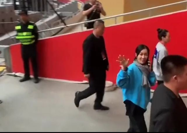 助理收下礼物后,那英和粉丝们亲切的挥手表示再见,之后就在一群人的陪同下大步流星的往前走了。看她走路的姿势,迈开大步,而不是像一般女星们走着小碎步,十分霸气了。大概是有工作要忙吧,脚步不停,不一会儿就消失在路的尽头了。