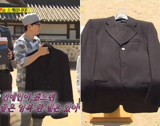 刘在石则拿出了这件超过20年的西装,这是出道早期,妈妈分了12期给自己买的名牌西装。他还在珍藏着,始终没忘记那段艰难的岁月。