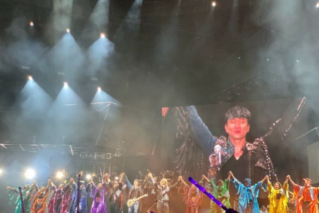 原标题:董璇化身“小迷妹”,为林俊杰演唱会助威,举手幅笑容
