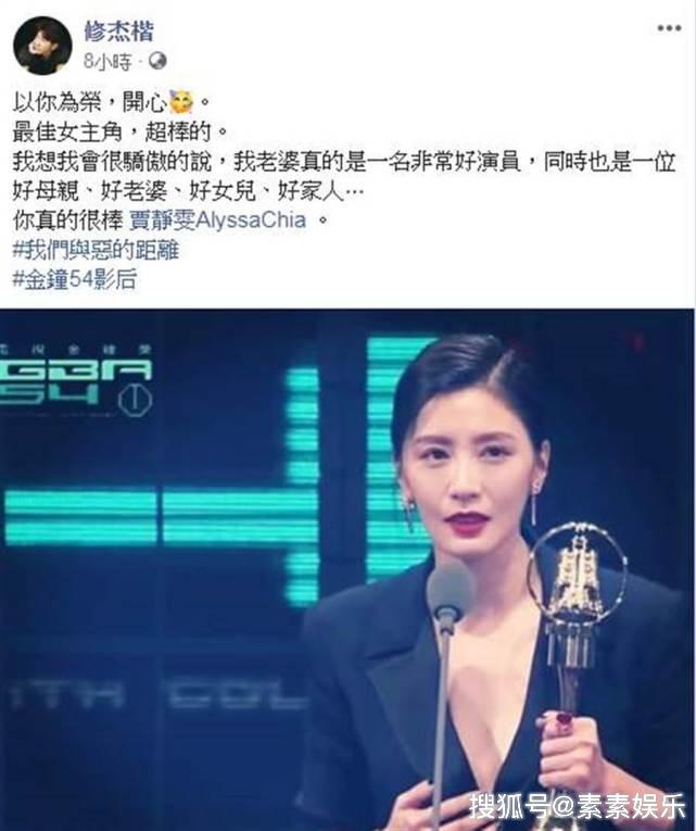 对于老婆的得奖,修杰楷也是高调发文声称“最佳女主角,我想说老婆真是一个非常好的演唱,同时也是一个好母亲 好老婆 好女儿 好家人,你真的很棒啦”