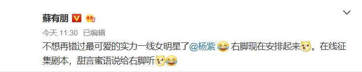 当晚苏有朋就安慰上杨紫了,说要安排《右脚》,杨紫开心地哈哈哈。这个应对已经很成功了吧。