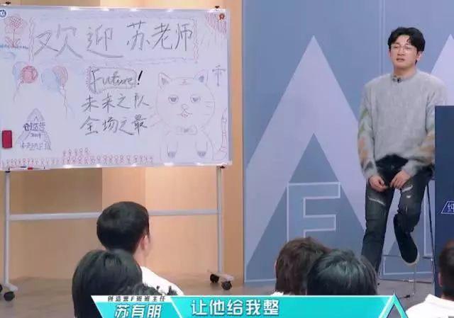 第一期《创造营》的时候,苏有朋在自己的班主任秀一身黑色衣出场完成一场唱跳,还有rap元素融合在一起。不仅舞蹈有力,唱功保持水准,rap的歌词也十分有梗。其中有一句“王俊凯说他爸才是我粉丝,出道30年还没退休,就是我本事”。