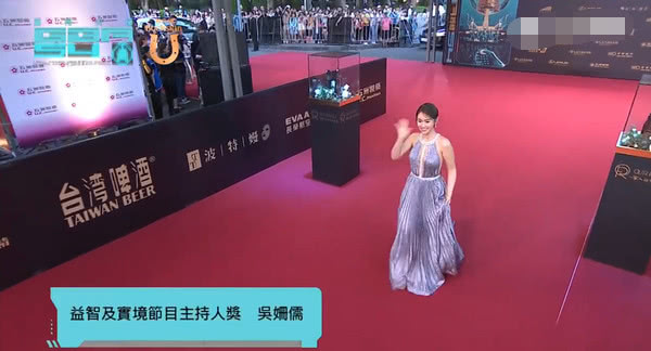 虽然礼服很是性感,但裙摆似乎有些过长,吴姗儒在走红毯的时候因为裙摆过长不小心绊了一下,差点摔倒。脚踩到礼服裙摆,让礼服整体都下滑了一点,临危不乱的吴姗儒很快冷静下来,调整自己的着装。