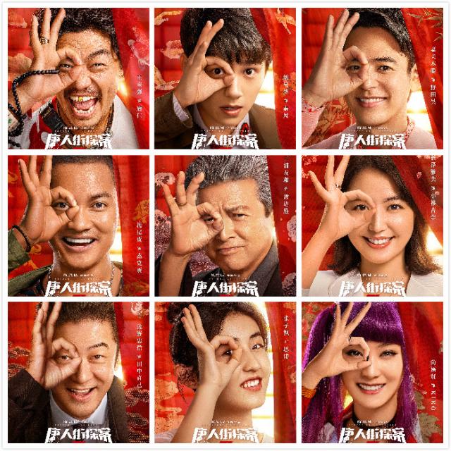 今日,电影《唐人街探案3》曝光一组“好开心”版角色海报,中日泰三国九大侦探亮相。