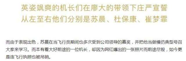 而涉事机长的照片和资料也是被公开了,他的名字叫苏晨,长相帅气,从照片中看年纪也不算大。最重要的是苏晨本人还多次在桂林航空获奖,算是明星机长了。