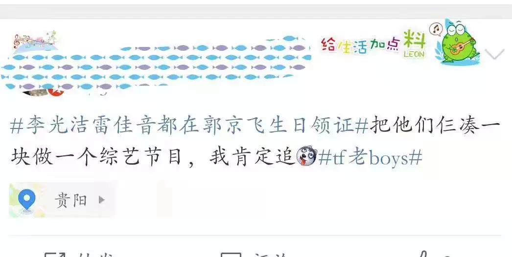 在横店时,为了三人约酒方便,雷佳音为三人建了一个微信群,群名就叫tf老boys。他们甚至还cos起了三小只,雷佳音是易烊千玺,郭京飞是王源,李光洁是王俊凯。