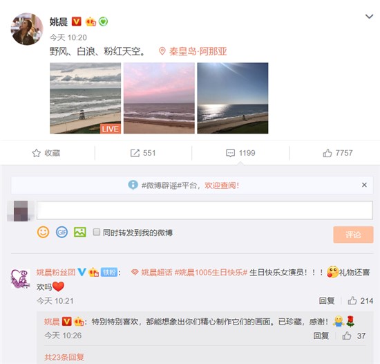 本身就明星之间的友谊来说很让人羡慕,因为不少合作过的明星们,单身的男女可以变成情侣夫妻,同性则可以成为朋友。有些合作之后一生的友谊真的是让人感慨,人都是感情动物,一次愉快的合作戏外的感情就会升华。俗话不都说:朋友多了路好走。很多时候明星们网上的言行也能稍微的感受到他们在圈内的人缘,比如说生日,结婚生子等等,有些明星就会得到大波同行的祝福,有些就显得过于冷清。5号是姚晨的生日,本身不少明星生日的时候,就算是礼貌性的回复下,起码看起来也没那么冷清。姚晨生日除了粉丝几乎看不见一个圈内同行的祝福.