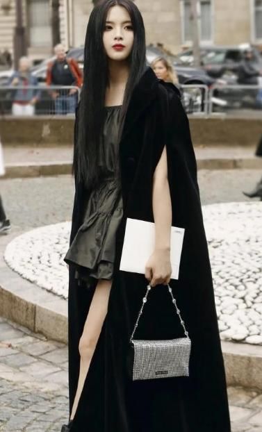 近日,杨超越现身2020春夏巴黎时装周秀场,当天杨超越身穿黑色系披风与短裙,长发披肩走暗黑系style。