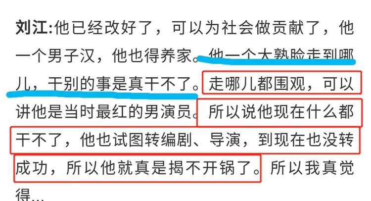 原标题:导演刘江透露黄海波现状:靠父亲养老金生活,基本没有其他
