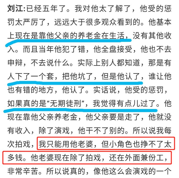而且刘江导演直言,当年黄海波犯的错误,是因为被人设计陷害,但黄海波没有辩解,全盘接受,对自己的遭遇“认了”。因此,刘江导演也表示,为了能支持好朋友,自己尽量会在拍戏的时候为黄海波妻子曲栅栅安排角色,但都是一些小角色,赚不到大钱,因此为了补贴家用,曲栅栅除了拍戏以外,还在外面兼职了其他工作,非常辛苦。