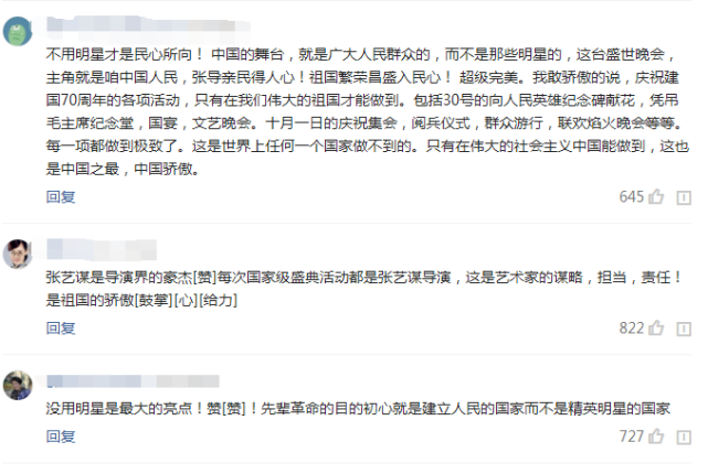 好多网友留言,不用明星真的是民心所向,这么大的盛典就是需要人民全体团结,统一协作,