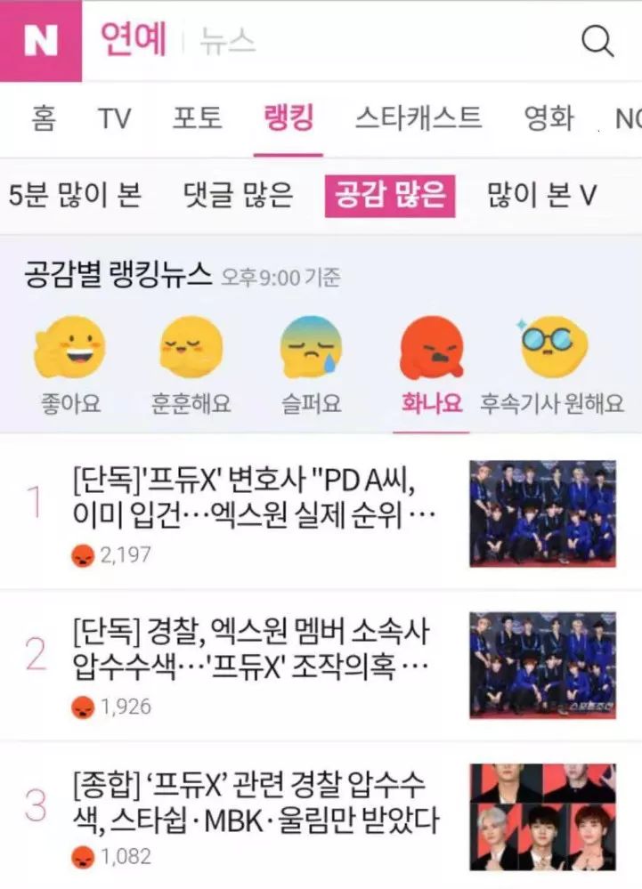 PDX排名更改被确认后,引起了网友们的一片哗然,关于做票新闻占领了Naver怒榜,关注度相当高。