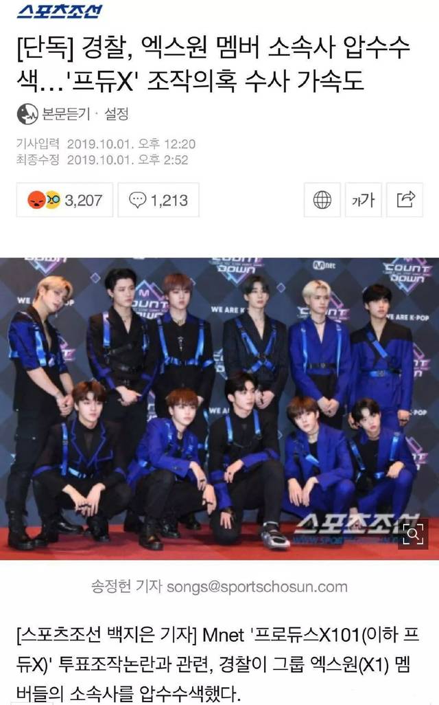 为掌握节目制作组与相关所属社之间是否存在不透明联系,警方在1日前往Starship娱乐、MBK娱乐、Woollim娱乐等X1成员们的所属社进行了扣押搜查。