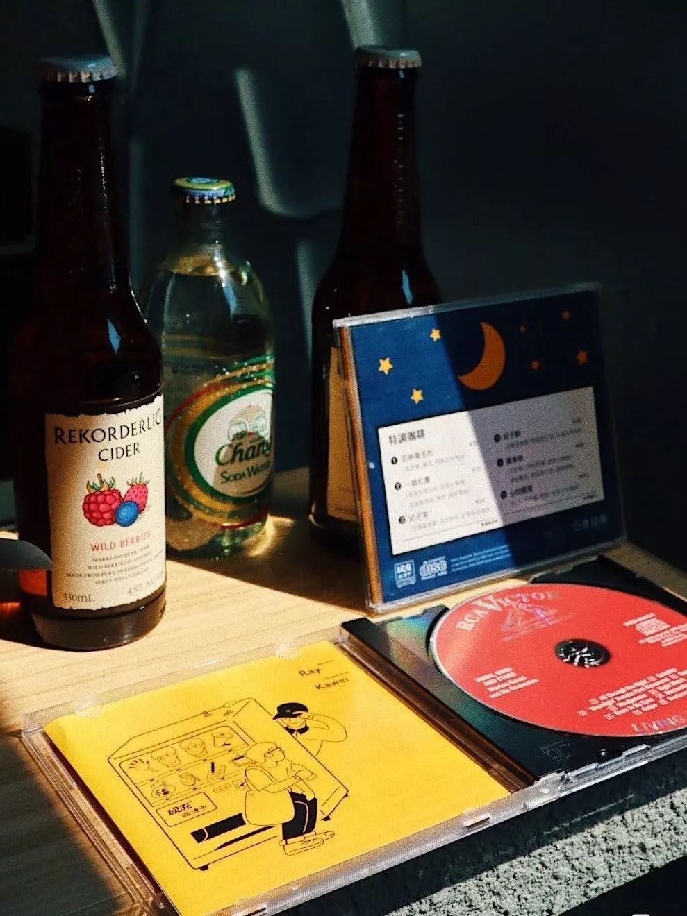 我们三个中年少男少女听到店里的音乐都感觉既熟悉又陌生,看着黑胶碟机旁摆放的泰极罗宾封面黑胶,瞬间回到8,90年代的年代感。