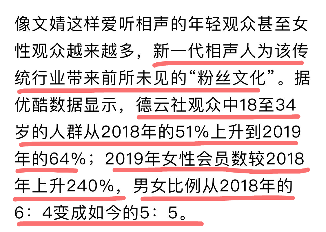 文章还以数据说明,德云社在吸引年轻女粉丝方面有多么大的魅力。